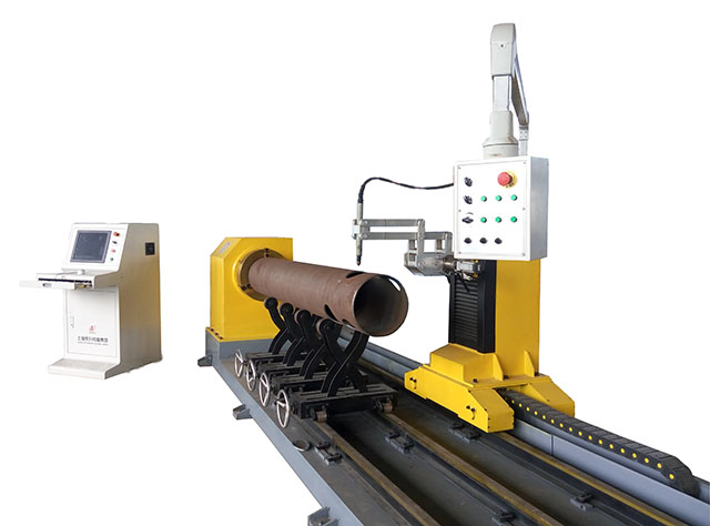YC-XGX系列數(shù)控相貫線切割機(jī)(相貫線坡口切割機(jī))是一種對(duì)鋼管端部結(jié)合處作自動(dòng)計(jì)算和切斷的設(shè)備。該機(jī)器能廣泛應(yīng)用于造船、建筑、石化、機(jī)械、冶金等行業(yè)的管道結(jié)構(gòu)件的切割加工。操作工人不須編程、只需輸入相互配合的管子的半徑、相交角度等參數(shù),機(jī)器就能自動(dòng)切割出管子的相貫線、相貫孔、以及焊接坡口,不再需要人工打磨。